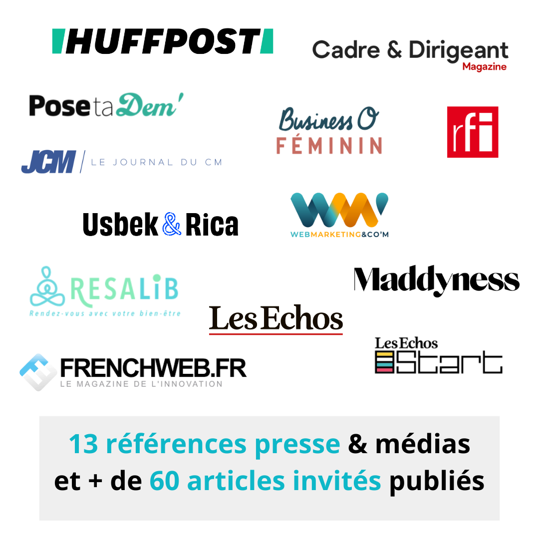 Depuis 2017, j'ai réussi à publier dans de grands médias tels que : Maddyness, Frenchweb, les Echos, le Huffpost, Usbek & Rica et plus encore. Ces articles m'ont permis de développer ma visibilité et ma notoriété avant même que j'ai pu développer ma communauté et mon chiffre d'affaires. Cette stratégie d'articles invités est redoutablement efficace, mais demande un certain savoir-faire que j'aimerais vous transmettre.